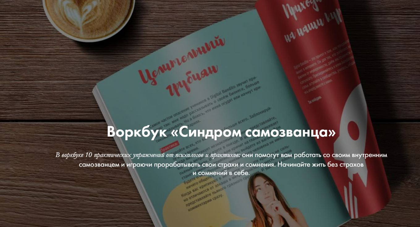 В воркбуке 10 практических упражнений от психологов и практиков: они помогут вам работать со своим внутренним самозванцем и играючи прорабатывать свои страхи и сомнения. Начинайте жить без страхов и сомнений в себе.banditomag.ru