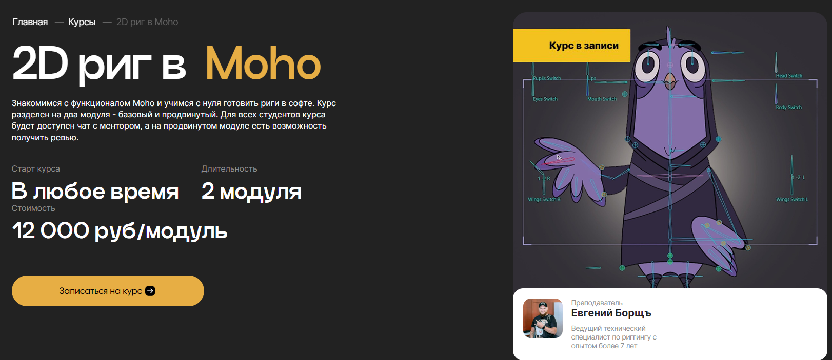 Формат курса «в записи» обычно подразумевает обучение без обратной связи от преподавателя. Но, только не на курсе «Риггинг в Мохо».