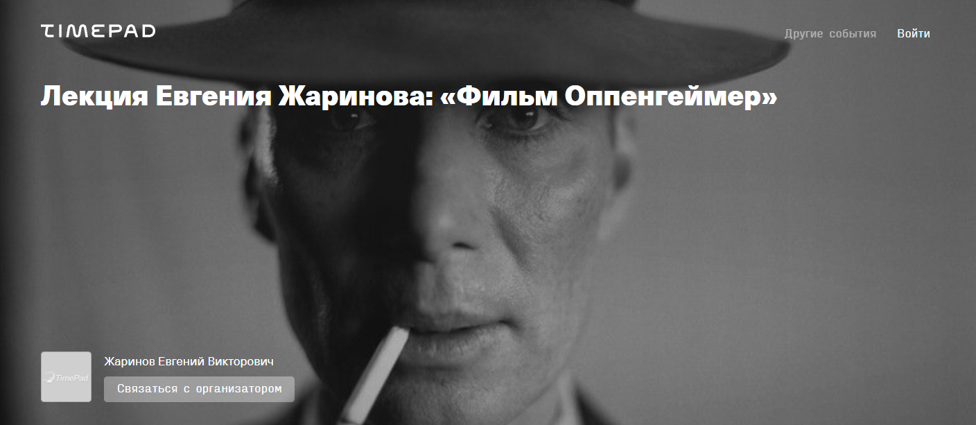 Лекция Евгения Жаринова: «Фильм Оппенгеймер» / События на TimePad.ru