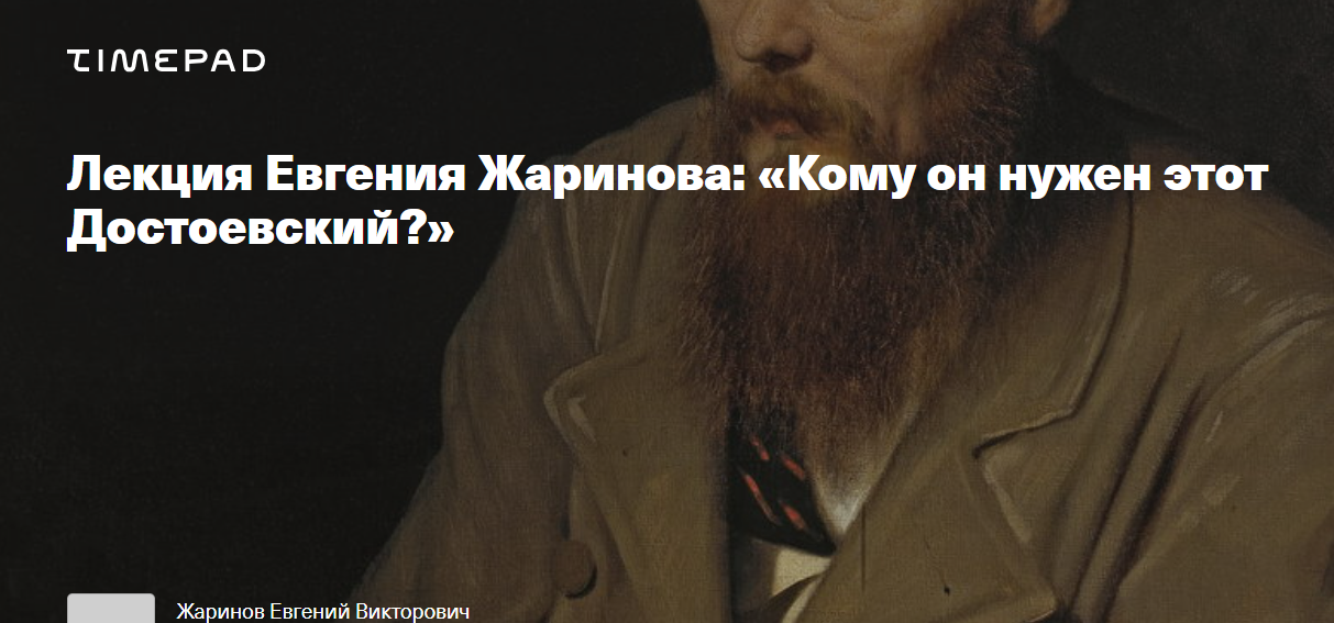 Лекция Евгения Жаринова: «Кому он нужен этот Достоевский?»zharinov-evgeniy.timepad.ru
