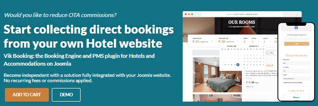 Single property hotel, holiday apartments & b&B booking engine. Vik Booking is the powerful, certified, unique Joomla hotel extension.extensionsforjoomla.com
