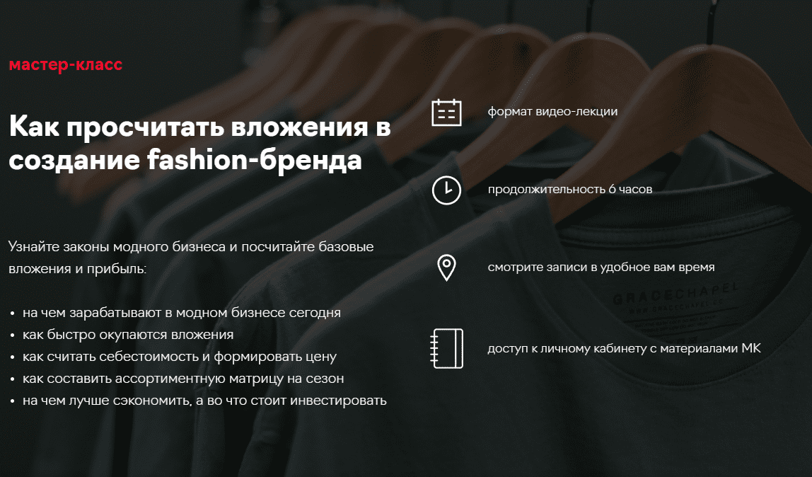 На мастер-классе вы разберетесь, сколько денег потребуется для создания собственного бренда. Заранее поймете, на чем можно сэкономить, а на чем никак. Эти базовые знания к подготовке к запуску станут вашей подушкой безопасности - все необходимые вводные и расчеты за 6 часов!