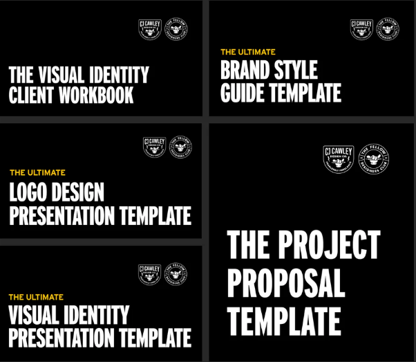 My Ultimate Bundle includes all 5 of my professional templates to help you attract high-ticket clients, present logo ideas without getting a bunch of annoying design amendments and deliver a kick-ass visual identity to your client while saving yourself a bunch of time and unnecessary headaches.