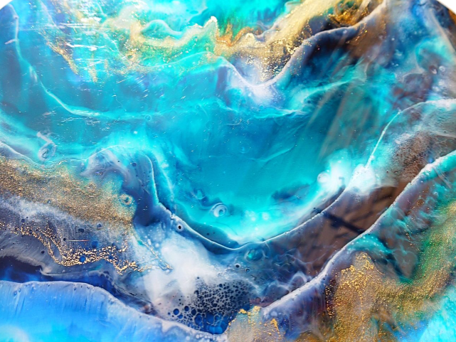 - Преподаватель расскажет и покажет базовую технику нанесения смолы на холст, имитирующую пену моря, облака. Разберем работу с феном для создания узоров и для выравнивания поверхности картины. При вас будет создана картина.