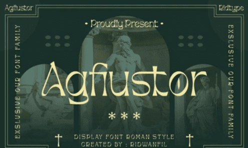 После создания Колизея как реликвии, этот шрифт также был создан в честь и в знак признания того, что в то время существовала империя, которая контролировала почти половину населения Земли. Благодаря этому шрифт agfiustor придает каждой букве уникальность, а также имеет несколько чередований и лигатур, благодаря которым шрифт agfiustor выглядит элегантно в любом месте.