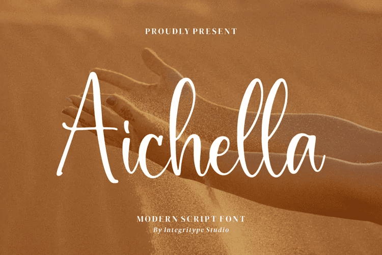 Aichella - Modern Script Font, от Integritype Studio, это премиальный каллиграфический шрифт, подходящий для любых проектов, таких как: логотипы, брендинговые проекты, дизайн домашней одежды, упаковка продуктов, кружки, цитаты, плакаты, сумки, футболки, обложки книг, именные карточки, пригласительные открытки, поздравительные открытки, этикетки, фотографии, водяные знаки, специальные мероприятия, и все другие роскошные проекты, которым нужен премиальный фирменный вкус.