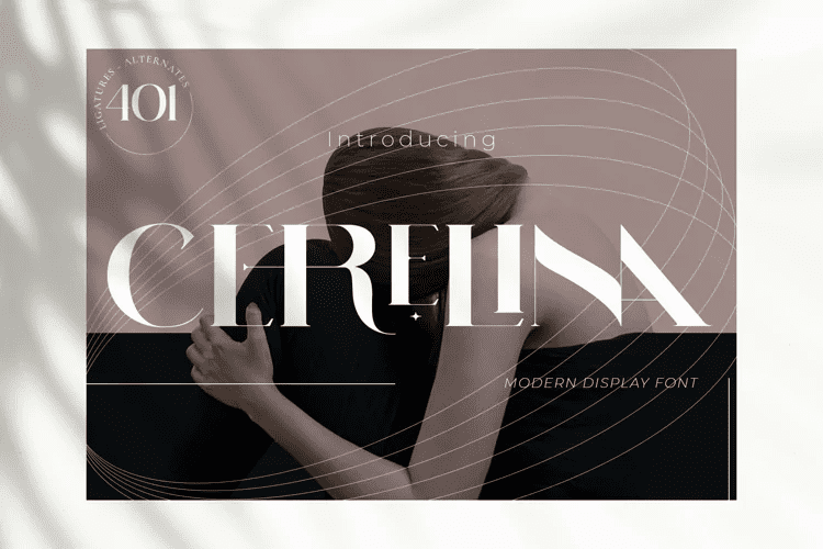 Cerelina - современный дисплейный шрифт, состоящий из 401 символа, включая 200+ лигатур.