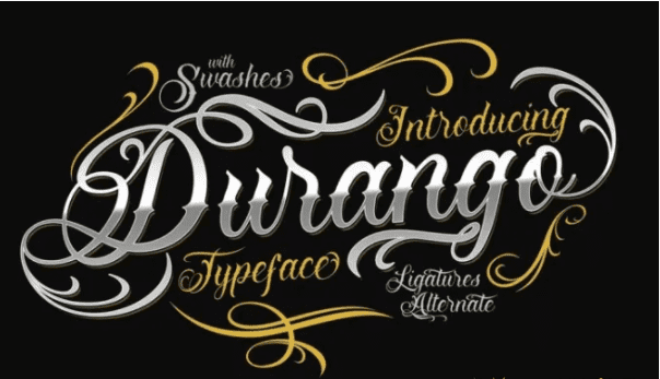 Шрифт Durango вдохновлен стилем шрифта татуировок в мексиканском регионе. Смелый, крутой и синонимичный стилю банд или гангстеров в Латинской Америке. В дополнение к шрифту Durango вы также получаете пакет Swash, который очень подходит для сочетания со шрифтом Durango, пример использования Swash со шрифтом Durango можно увидеть на плакате предварительного просмотра шрифта Durango.