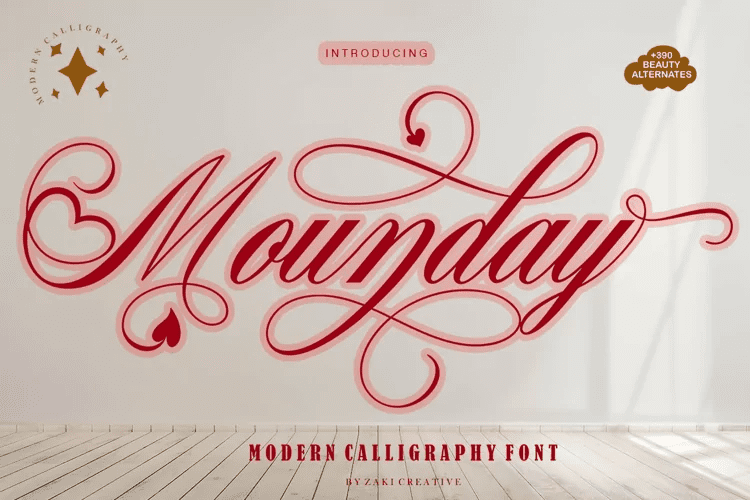 Download Mounday Calligraphy (1715796) instantly now! Trusted by millions + EASY to use Font Files + Full Support.fontbundles.net