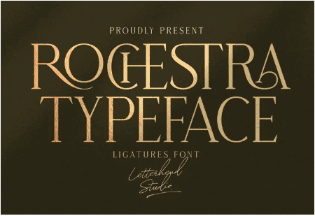 Rochestra Typeface — это сложные засечки с уникальными лигатурными символами. Идеально подходит для других различных формальных форм, таких как приглашения, этикетки, логотипы, журналы, книги, поздравительные / свадебные открытки, упаковка, мода, макияж, канцелярские товары, романы, этикетки или любые рекламные цели.