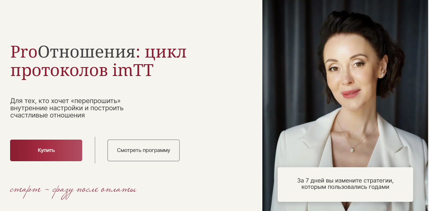 Формат: 7 дней — 7 уроков. Цикл из 5 протоколов imTT. 60 дней доступа - возможность пройти цикл 2-3 раза