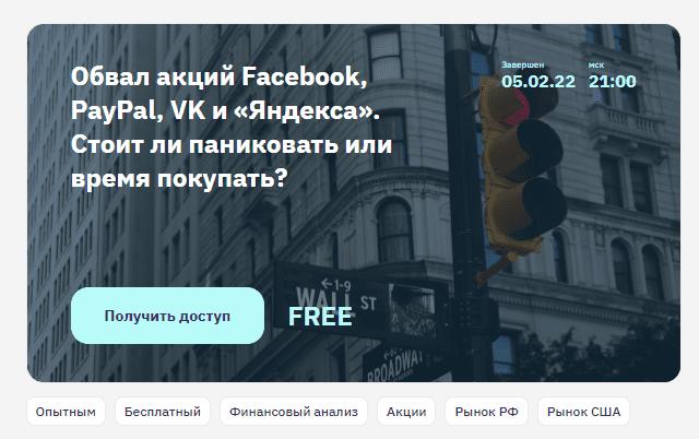 На вебинаре рассмотрим акции российских эмитентов и бумаги из США, а также секторальные ETF, которые могут быть интересны в случае дальнейшего падения индекса S&P 500.