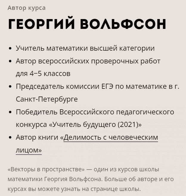 Онлайн-курс «Векторы в пространстве» от Георгия Вольфсона
