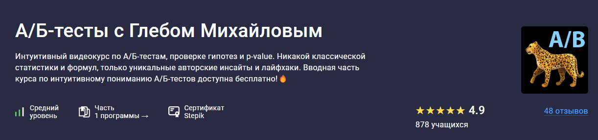 Интуитивный видеокурс по А/Б-тестам, проверке гипотез и p-value. Никакой классической статистики и формул, только уникальные авторские инсайты и лайфхаки. Вводная часть курса по интуитивному пониманию А/Б-тестов доступна бесплатно!🔥stepik.org
