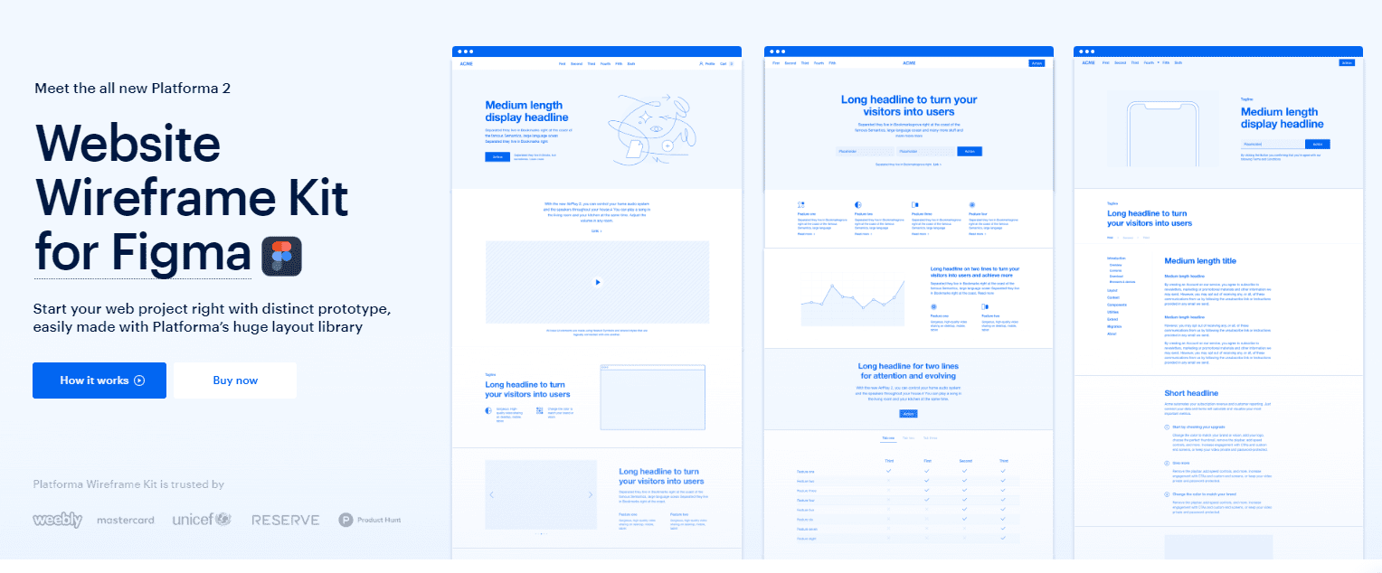 Collection of components and UI elements for creating efficient website wireframes.platforma.ws