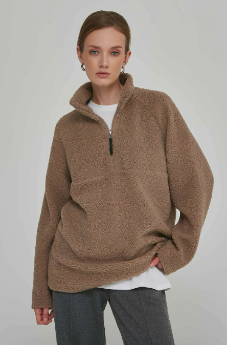 Анорак сшит из из шерпы на флисе, состав 30% шерсть, 50% хлопок, 20% полиэстер, плотность 450 гр/м².