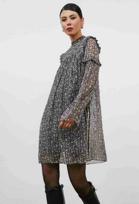 Платье сшито из шифона, состав полиэстер 100%, плотность 100 гр/м².