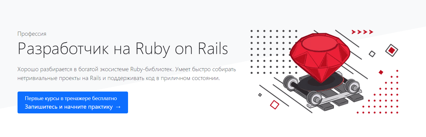 Изучите один из самых выразительных языков программирования Ruby. Освойте фреймворк Rails или, как его называют разработчики, «рельсы», который позволит сконцентрироваться на методах и логике вашего проекта, а не возиться с большим объемом кодаru.hexlet.io