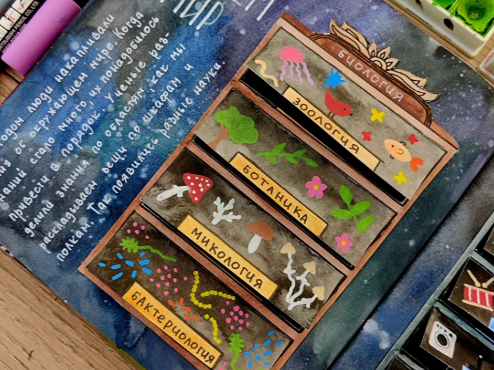 Когда 4 разворота будут готовы, можно немного отвлечься и порисовать в свое удовольствие, не привязываясь к темам и лекциям. Бонусом вас будет ждать 5 урок.