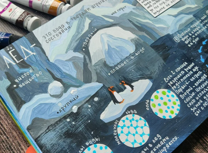 - 4 красивых разворота в скетчбуке + отдельная творческая работа