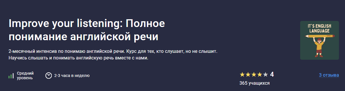 Этот курс "Аудирование - полное понимание английской речи" предназначен для всех, кто хочет улучшить свои навыки аудирования на английском языке.