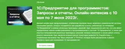 1C:Предприятие для программистов: Запросы и отчеты. Онлайн-интенсив с 10 мая по 7 июня 2023г.