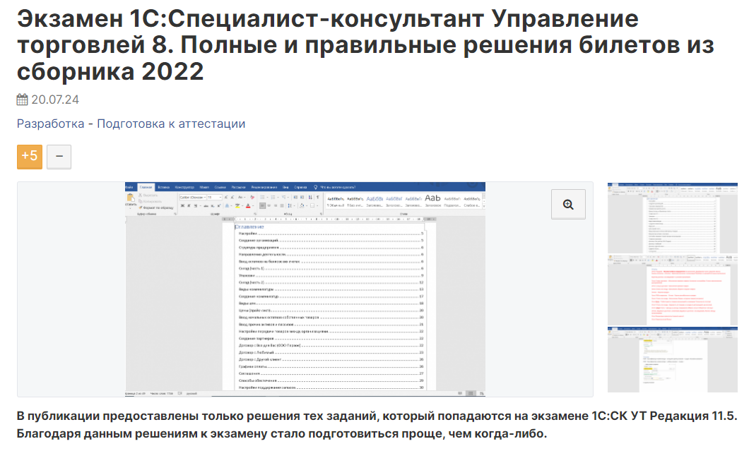В публикации предоставлены только решения тех заданий, который попадаются на экзамене 1С:СК УТ Редакция 11.5. Благодаря данным решениям к экзамену стало подготовиться проще, чем когда-либо.infostart.ru
