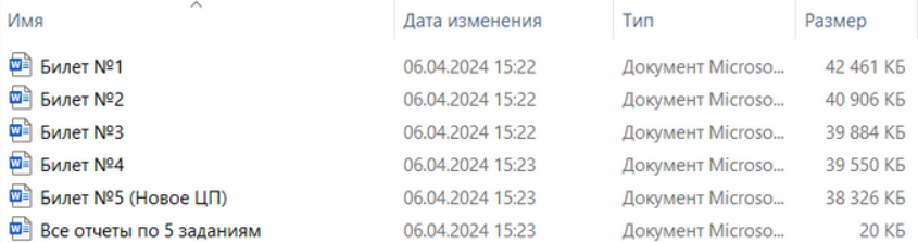 Решения всех билетов вынесены в отдельные ворд файлы. В каждом вордовском файле решение каждого билета прописано по шагам, с пояснительным текстом, а так же действия подкреплены скриншотами из демо базы 1С. В конце каждого решения, выведены необходимые и заполненные отчеты по условиям задач.