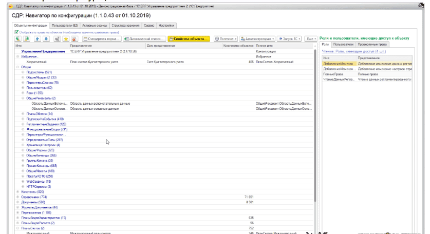 Универсальная внешняя обработка для просмотра метаданных конфигураций баз 1С 8.3. Отображает свойства и реквизиты объектов конфигурации, их количество, основные права доступа и т.д. Отображаемые характеристики объектов: свойства, реквизиты, стандартные рекизиты, реквизиты табличных частей...infostart.ru