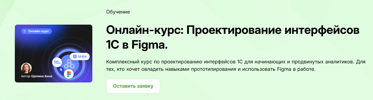 Комплексный курс по проектированию интерфейсов 1С для начинающих и продвинутых аналитиков. Для тех, кто хочет овладеть навыками прототипирования и использовать Figma в работе.