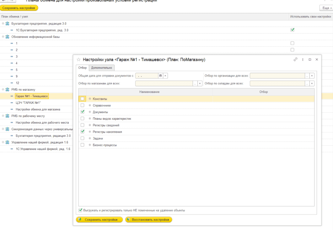 Система настройки произвольных условий регистрации и фильтрации типового обмена вместо правил конвертаций для каждого узла в отдельности (8.3.14+, расширения для УТ 11, КА 2, ERP 2, Розница 2, БП3, УНФ 1.6)