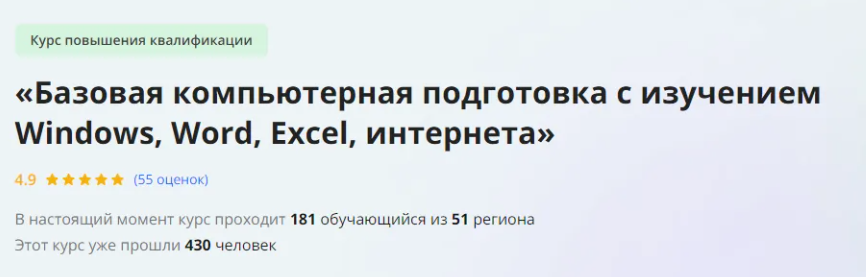 Большая часть современных специальностей связана с работой на персональном компьютере. В курсе повышения квалификации «Базовая компьютерная подготовка с изучением Windows, Word, Excel, PowerPoint, интернета» мы познакомимся с самыми азами работы с компьютером – его устройством, назначением и работой с операционной системой Windows, работой с популярным пакетом «Office» от компании Microsoft и работой в интернете.