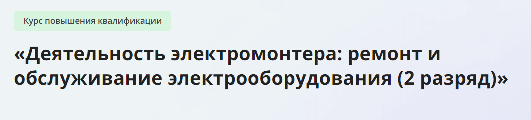 Курс повышения квалификации «Деятельность электромонтера: ремонт и обслуживание электрооборудования (2 разряд)»