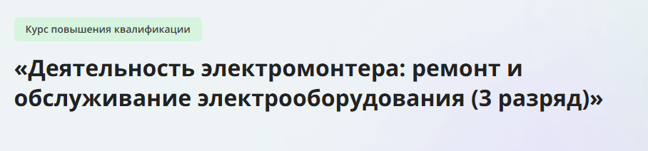 Совершенствование профессиональных компетенций в области ремонта и обслуживания электрооборудования (3 разряд)
