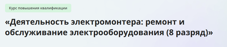Совершенствование профессиональных компетенций в области ремонта и обслуживания электрооборудования (8 разряд)