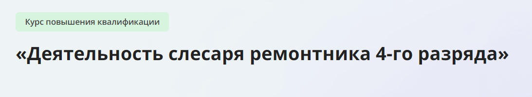 Курс повышения квалификации «Деятельность слесаря ремонтника 4-го разряда»