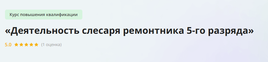 Данный курс повышения квалификации направлен на совершенствование профессиональных компетенций в области слесарного дела для слесарей-ремонтников 5 разряда. Курс предполагает изучение основных понятий и определений материаловедения, черчения, электротехники. В рамках курса особое внимание будет уделено организации регулировки и технического обслуживания оборудования, а также его диагностики и смазки. По итогам прохождения курса слушатели смогут использовать полученные знания в своей деятельности слесаря-ремонтника 5-го разряда.