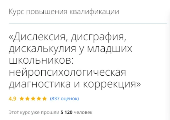 Совершенствование профессиональных компетенций слушателей в области дислексия, дисграфия и дискалькулия при проведении нейропсихологической диагностики и коррекции
