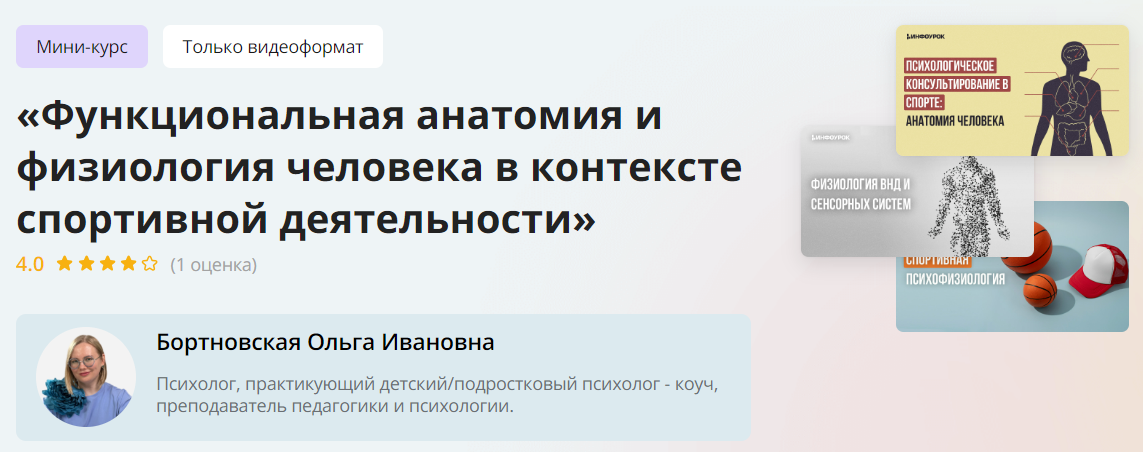 Курс предназначен для формирования у слушателей целостного понимания взаимосвязи между психологическими процессами и физиологическими механизмами в контексте спорта. Он предоставляет теоретическую базу и практические инструменты для эффективной работы со спортсменами, учитывая как психологические, так и физиологические аспекты их подготовки и выступлений.. Слушатели изучат строение тела человека с учетом возрастно-половых особенностей, принципы восприятия информации, физиологию органов чувств, механизмы поведения и функциональных состояний. Особое внимание уделяется памяти как ключевому свойству нервной системы, обеспечивающему адаптацию к окружающей среде.