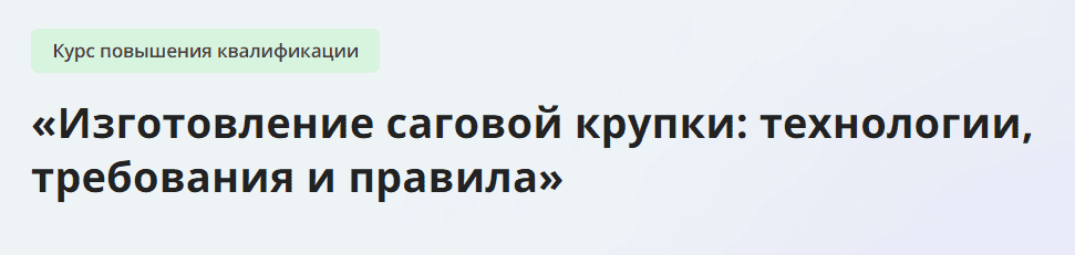 Совершенствование профессиональных знаний и навыков слушателей в области технологий изготовления саговой крупки