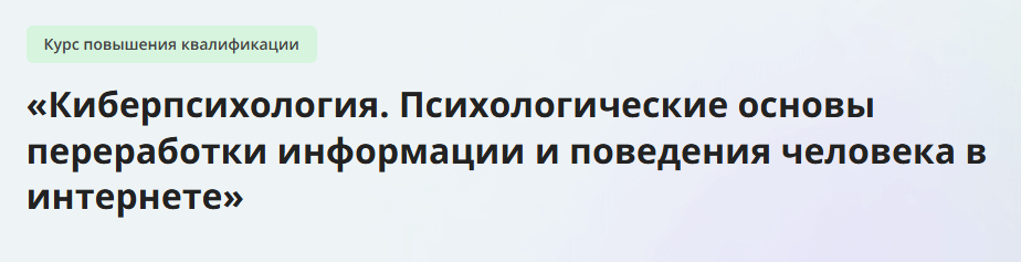 Совершенствование профессиональных компетенций слушателей в области взаимодействия человека с виртуальной сетью и оказываемым влиянием этого пространства на него