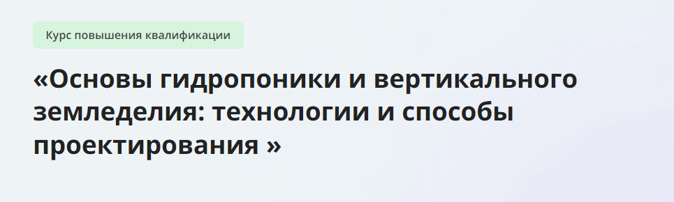 Название: Курс повышения квалификации «Основы гидропоники и вертикального земледелия - технологии и способы проектирования» (2024)