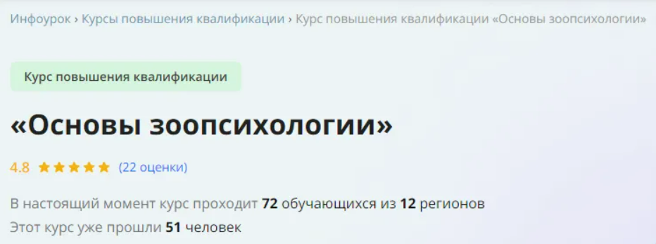 Совершенствование и (или) получение профессиональных компетенций слушателей в области психологии животных