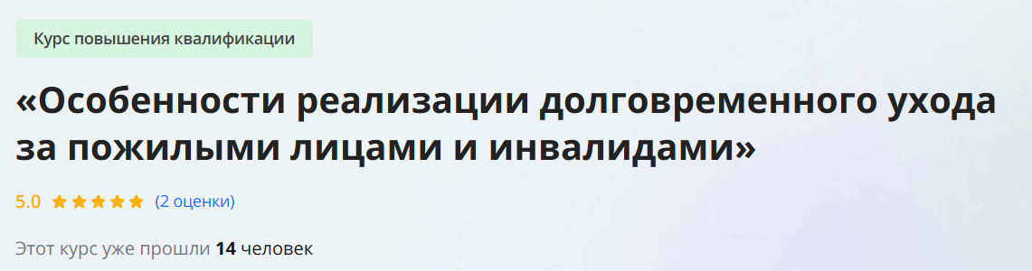 Курс повышения квалификации «Особенности реализации долговременного ухода за пожилыми лицами и инвалидами»