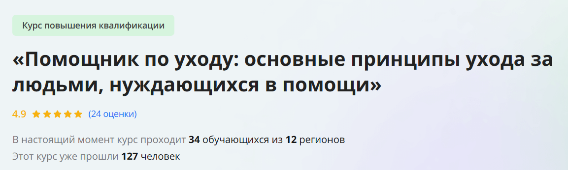 Курс повышения квалификации «Помощник по уходу: основные принципы ухода за людьми, нуждающихся в помощи»