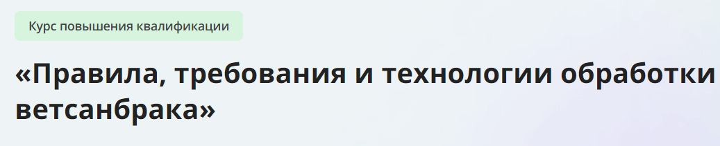 Курс ориентирован на рассмотрение существующих правил, требований и технологий обработки ветсанбрака. На курсе слушатели рассмотрят анатомическое строение туш скота всех видов, способы консервирования и дезинфекции шкур при заболеваниях животных, процесс консервирования шкур павших и больных животных, рецептуры и правила приготовления консервирующих и дезинфицирующих смесей и растворов, а также правила личной и производственной профилактики при обработке трупов или туш больных животных.