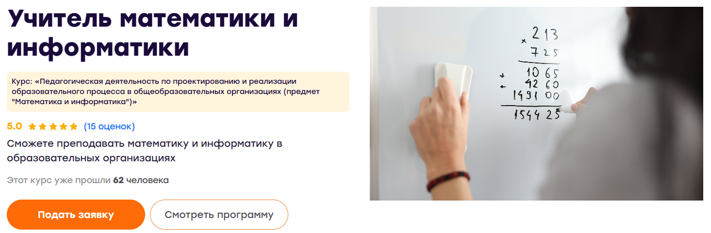 Курс профессиональной переподготовки «Педагогическая деятельность по проектированию и реализации образовательного процесса в общеобразовательных организациях (предмет "Математика и информатика")»
