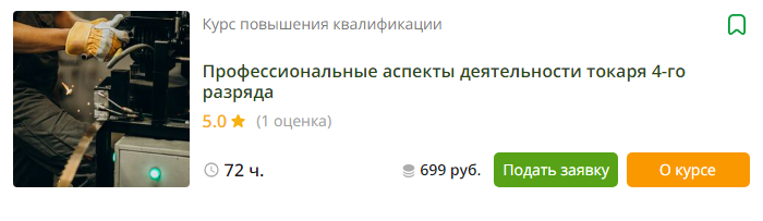Данный курс повышения квалификации направлен на совершенствование знаний слушателей в области токарного дела. В программе курса рассматриваются теоретические основы деятельности токаря 4-го разряда. В рамках курса особое внимание будет уделено аспектам квалитетов, параметров шероховатости, а также аспектам крупногабаритной токарной обработки. Полученные знания позволят эффективно организовывать деятельность токаря 4-го разряда.