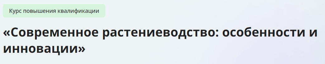 Данный курс представляет собой комплексное изучение современного растениеводства, охватывающее как фундаментальные основы, так и новейшие технологии. Слушатели получат знания о биологических особенностях основных сельскохозяйственных культур, овладеют современными агротехническими приемами и научатся разрабатывать эффективные стратегии выращивания для достижения максимальной урожайности. Особое внимание уделяется принципам севооборота, защите растений и применению цифровых технологий в сельском хозяйстве. Курс направлен на формирование компетенций, необходимых для успешной работы в современном динамично развивающемся аграрном секторе.
