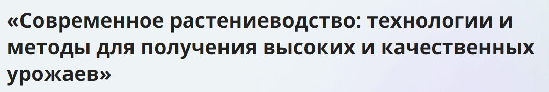 Курс повышения квалификации «Современное растениеводство: технологии и методы для получения высоких и качественных урожаев»